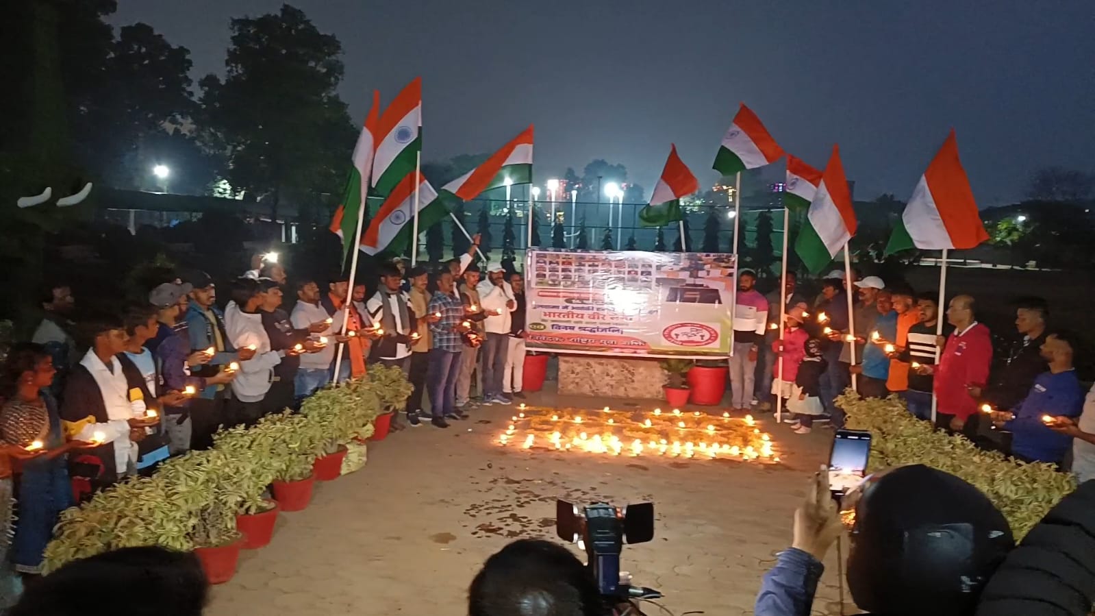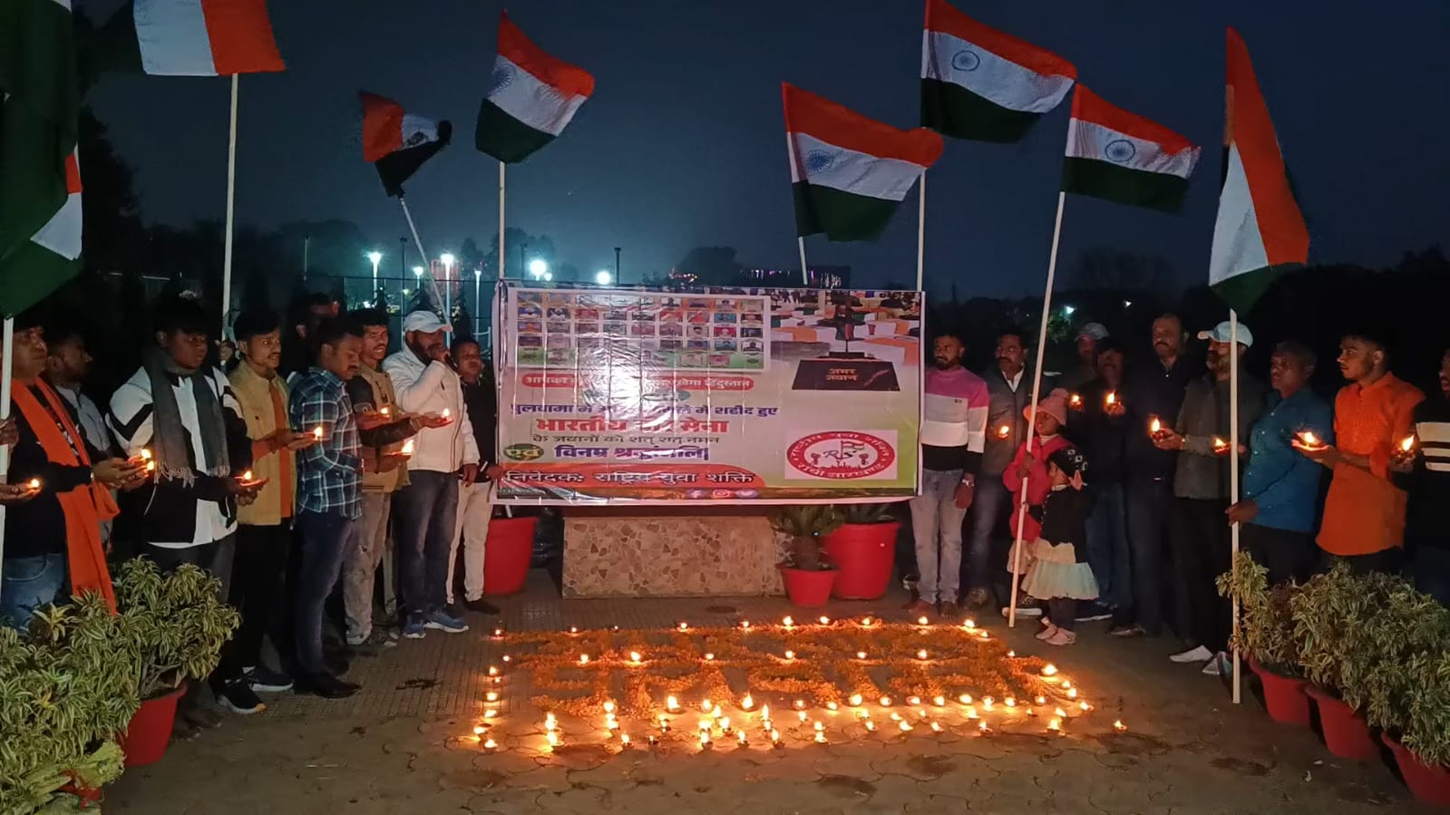 मोराबादी मैदान स्थित ऑक्सीजन पार्क के प्रांगण में पुलवामा हमले में शहीद हुए वीर जवानों की श्रद्धांजलि सभा राष्ट्रीय युवा शक्ति द्वारा आयोजित की गई जहाँ सैकड़ों की संख्या में राँची वासियों ने दिप जलाकर अपने वीर शहीदों को श्रद्धासुमन अर्पित किया।