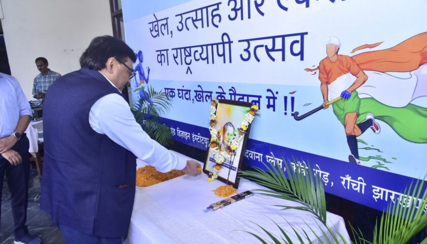 रांची 29 अगस्त। सीएमपीडीआई के अध्यक्ष-सह-प्रबंध निदेशक श्री मनोज कुमार ने राष्ट्रीय खेल दिवस-25 के अवसर पर संस्थान के मुख्य भवन के समीप मेजर ध्यानचंद जी की तस्वीर पर मार्ल्यापण अर्पित कर श्रद्धांजलि दी और महान हॉकी खिलाड़ी मेजर ध्यानचंद जी की विरासत को याद करते हुए भारतीय हॉकी में उनके उत्कृष्ट योगदान पर प्रकाश डाला। इस अवसर पर उन्होंने अपने कर्मियों को फिट इंडिया शपथ दिलायी। इस आयोजन में संस्थान के निदेशक (तकनीकी/सीआरडी) श्री शंकर नागाचारी, मुख्यालय तथा क्षेत्रीय संस्थान-3, रांची के अधिकारी एवं कर्मचारीगण उपस्थित थे।