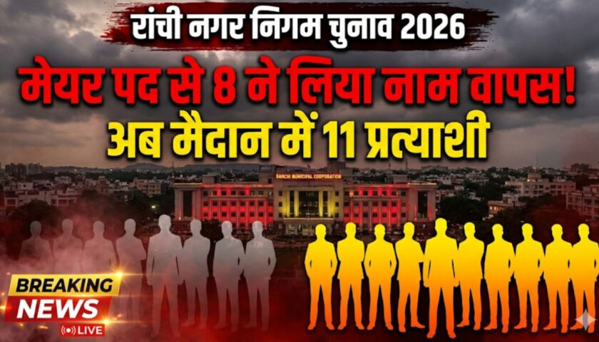 रांची | नगरपालिका (आम) निर्वाचन-2026 के तहत रांची नगर निगम के मेयर पद के लिए नाम वापसी की प्रक्रिया शुक्रवार को सफलतापूर्वक संपन्न हो गई। समाहरणालय ब्लॉक-बी स्थित निर्वाची पदाधिकारी के कक्ष में कुल 8 विधिमान्य अभ्यर्थियों ने अपना नामांकन वापस ले लिया।