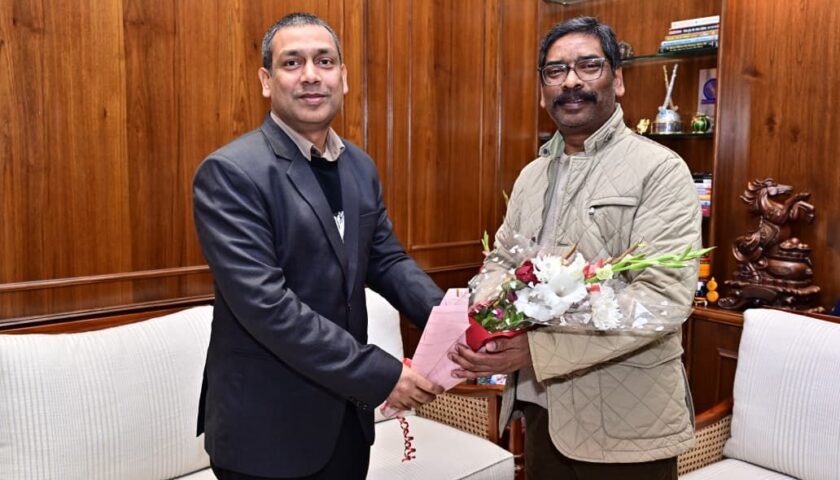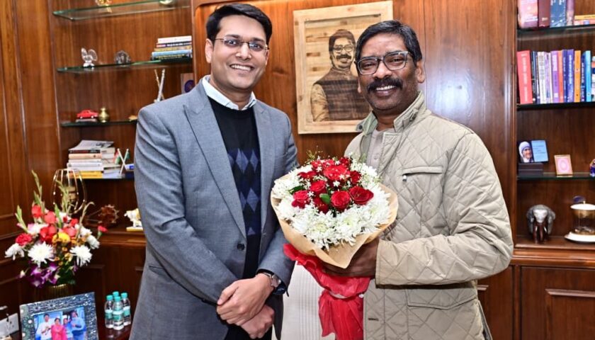 रांची। मुख्यमंत्री हेमन्त सोरेन से आज कांके रोड, रांची स्थित मुख्यमंत्री आवासीय कार्यालय में प्रशासनिक एवं पुलिस विभाग के वरिष्ठ अधिकारियों ने शिष्टाचार भेंट की। इस अवसर पर सभी अधिकारियों ने मुख्यमंत्री को नववर्ष 2026 की हार्दिक बधाई एवं शुभकामनाएं दीं।