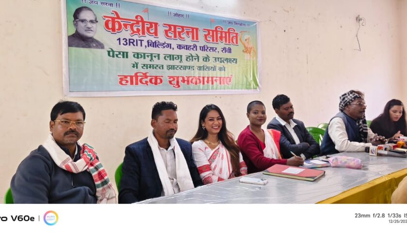 रांची | पेसा कानून को झारखंड कैबिनेट से मंजूरी मिलने के उपलक्ष्य में आज केंद्रीय सरना 13 आरआईटी बिल्डिंग, कचहरी परिसर, रांची के तत्वावधान में केंद्रीय धमकुडिया करमटोली, रांची में एक प्रेस वार्ता का आयोजन किया गया।