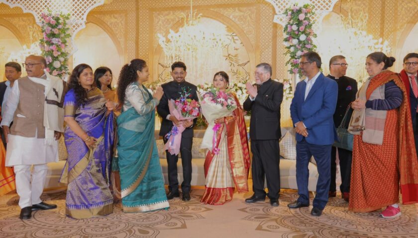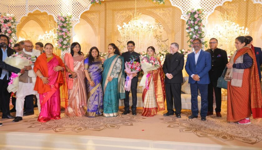 रांची/नई दिल्ली: दिल्ली में आयोजित झारखंड के राज्यपाल श्री संतोष गंगवार के सुपुत्र श्री अपूर्व गंगवार के विवाह समारोह में झारखंड के मुख्यमंत्री श्री हेमंत सोरेन एवं विधायक श्रीमती कल्पना सोरेन ने सहभागिता निभाई।