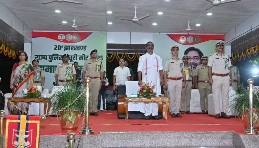रांची। मुख्यमंत्री हेमन्त सोरेन शुक्रवार को जैप-1 ग्राउंड, डोरंडा में आयोजित 20वीं झारखंड राज्य पुलिस ड्यूटी मीट-2025 के समापन समारोह में शामिल हुए। इस अवसर पर मुख्यमंत्री ने पुलिस विभाग की भूमिका को राज्य की रीढ़ बताते हुए कहा कि चुनौती के इस दौर में पुलिस को दक्ष होना जरूरी है।