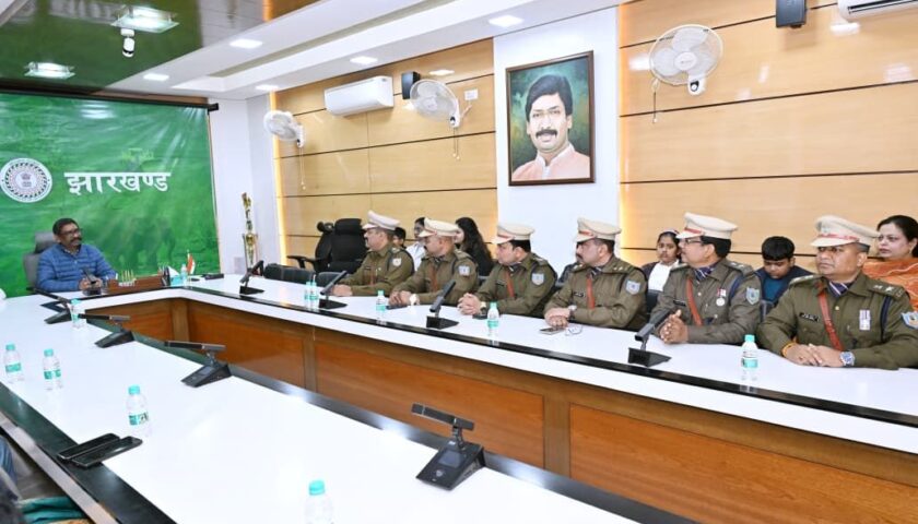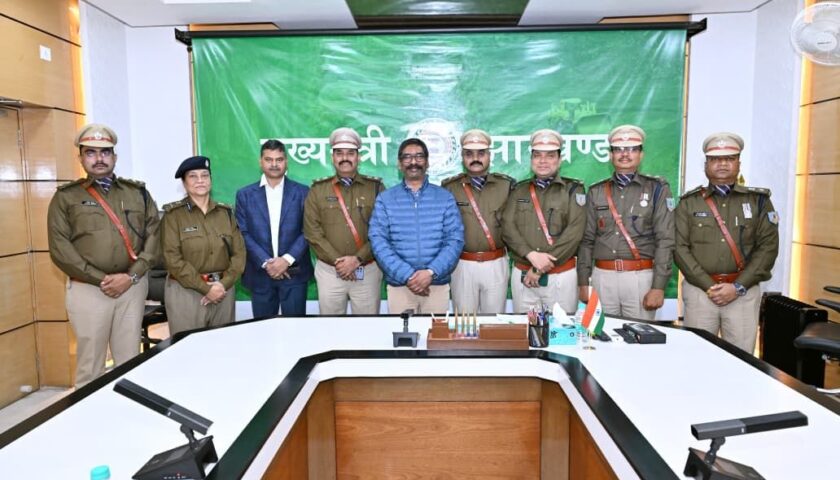 रांची: मुख्यमंत्री श्री हेमन्त सोरेन ने मंगलवार को कांके रोड स्थित मुख्यमंत्री आवासीय कार्यालय में भारतीय पुलिस सेवा (IPS) रैंक में प्रोन्नत अधिकारियों को बधाई दी। इस अवसर पर राज्य पुलिस सेवा से आईपीएस कैडर में पदोन्नत अधिकारियों ने मुख्यमंत्री से शिष्टाचार भेंट की।