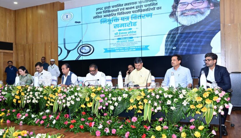 मुख्यमंत्री श्री हेमन्त सोरेन ने आज झारखंड मंत्रालय में आयोजित समारोह में स्वास्थ्य विभाग के 160 नवनियुक्त सहायक प्राध्यापकों, दंत चिकित्सकों एवं चिकित्सा पदाधिकारियों को नियुक्ति पत्र सौंपा। उन्होंने कहा कि इन नियुक्तियों से राज्य की स्वास्थ्य व्यवस्था और अधिक मजबूत होगी तथा गरीब और असहाय लोगों को बेहतर चिकित्सा सुविधाएं उपलब्ध हो सकेंगी।