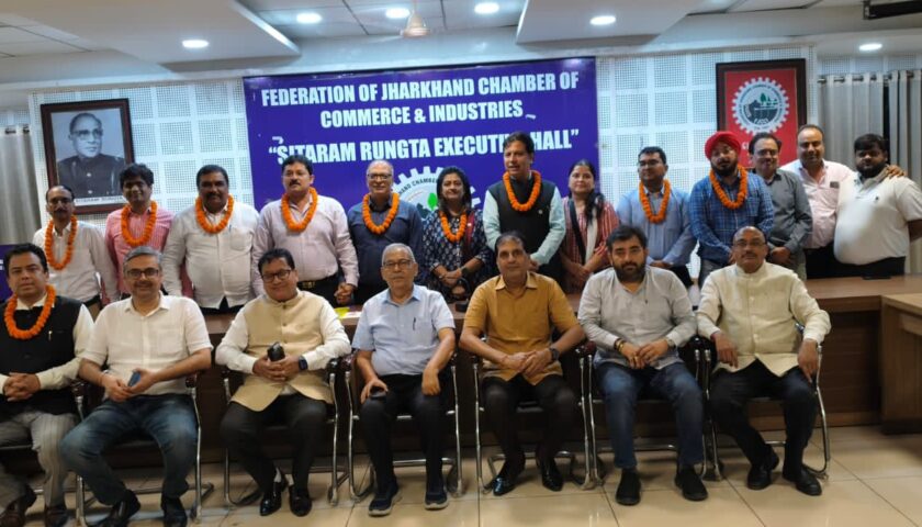 फेडरेशन ऑफ झारखण्ड चैंबर ऑफ कॉमर्स एण्ड इन्डस्ट्रीज के सत्र 2025-26 के नवनिर्वाचित कार्यकारिणी समिति के सदस्यों की बैठक आज चैंबर भवन में चुनाव पदाधिकारी बिकास सिंह और पवन शर्मा की अध्यक्षता में संपन्न हुई। चुनाव पदाधिकारियों ने नवनिर्वाचित कार्यकारिणी समिति के सभी सदस्यों को बधाई दी और वर्षभर राज्य के व्यापारियों, उद्यमियों एवं प्रोफेशनल्स के हित में कार्यरत रहने के लिए प्रेरित किया।