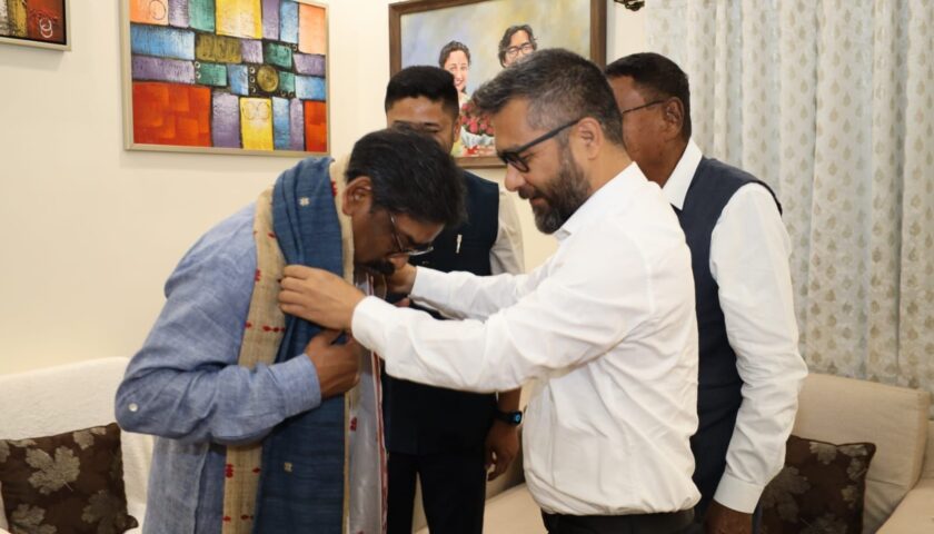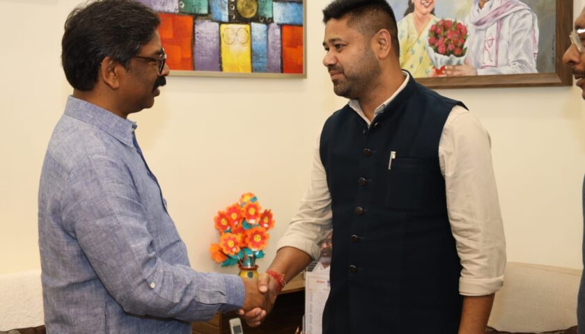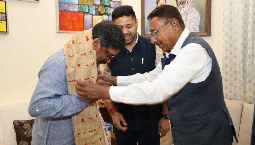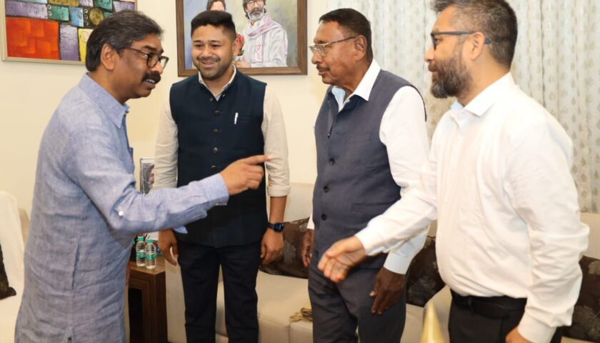 रांची, 12 मार्च 2026: झारखंड के मुख्यमंत्री हेमन्त सोरेन से गुरुवार को रांची स्थित कांके रोड स्थित मुख्यमंत्री आवासीय कार्यालय में असम जातीय परिषद (AJP) के अध्यक्ष लूरिनज्योति गोगोई ने शिष्टाचार मुलाकात की।