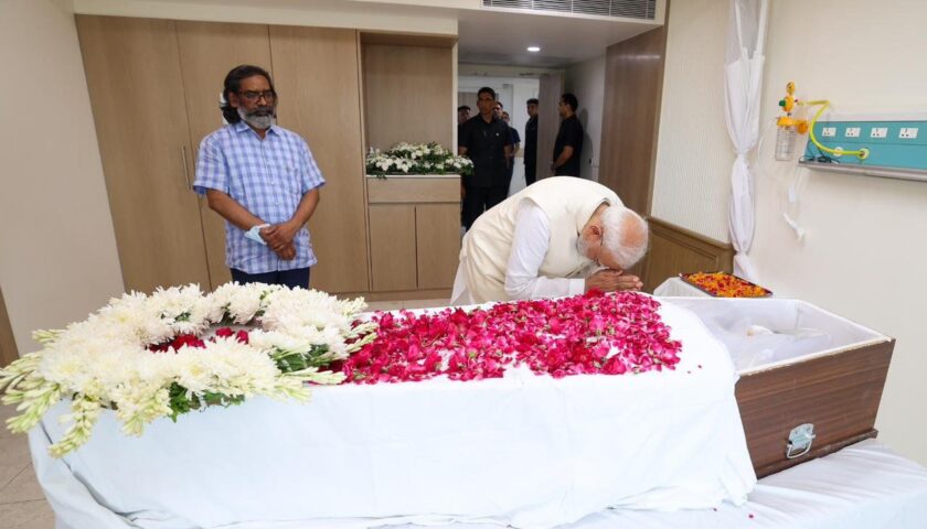 दिशोम गुरू के निधन पर कई नेताओं ने उन्हें श्रद्धांजलि दी है, पीएम नरेंद्र मोदी भी सर गंगाराम हॉस्पिटल पहुंचे और उन्होंने शिबू सोरेन को श्रद्धांजलि दी. साथ ही सीएम हेमंत सोरेन के कंधे पर हाथ रखकर हिम्मत बंधायी.