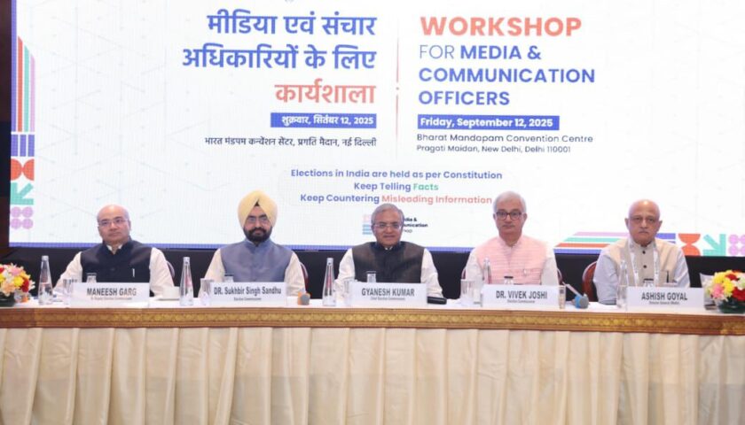भारतीय चुनाव आयोग (ईसीआई) ने आज नई दिल्ली के भारत मंडपम में सभी 36 राज्यों और केंद्र शासित प्रदेशों के मुख्य निर्वाचन अधिकारियों (सीईओ) के कार्यालयों के मीडिया और संचार अधिकारियों के लिए एक दिवसीय कार्यशाला का आयोजन किया।