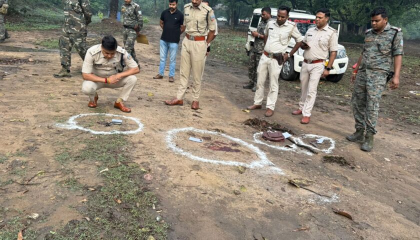पुलिस ने घटनास्थल से दो देसी पिस्तौल, एक मोबाइल फोन और एक लेदर बैग बरामद किया है।