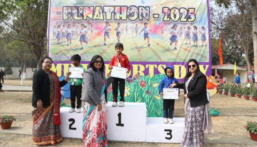 रांची में 20 दिसंबर 2025 को प्राइमरी विंग के विद्यार्थियों के लिए मिनी स्पोर्ट्स डे – फनाथॉन 2025 का भव्य एवं सफल आयोजन किया गया। इस अवसर पर विद्यालय परिसर आनंद, उत्साह और स्वस्थ प्रतिस्पर्धा की भावना से सराबोर हो उठा। कार्यक्रम का मुख्य उद्देश्य विद्यार्थियों में शारीरिक सुदृढ़ता, टीम भावना तथा खेल भावना का विकास करना था।