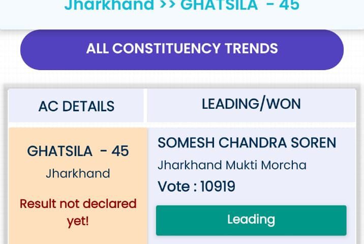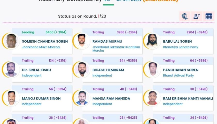 घाटशिला उपचुनाव LIVE: तीसरे राउंड में भी जेएमएम के सोमेश चंद्र सोरेन को बढ़त, BJP पीछे!