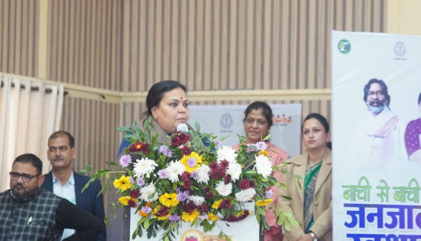 मंत्री दीपिका पांडेय सिंह मंगलवार को ऑड्रे हाउस, रांची में आयोजित दो दिवसीय “नाची से बाची” जनजातीय स्वशासन महोत्सव के उद्घाटन समारोह को संबोधित कर रही थीं। इस अवसर पर उन्होंने पंचायत पत्रिका का लोकार्पण किया तथा पंचायत पोर्टल का भी विधिवत उद्घाटन किया।