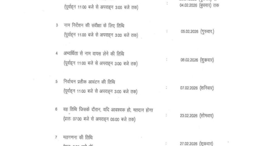 रांची। झारखंड में नगर निकाय चुनाव 2026 को लेकर राज्य निर्वाचन आयोग ने चुनाव कार्यक्रम की घोषणा कर दी है। राज्य के कुल 48 नगर निकायों में 23 फरवरी 2026 को एक ही चरण में मतदान कराया जाएगा, जबकि 27 फरवरी 2026 को मतों की गिनती होगी।