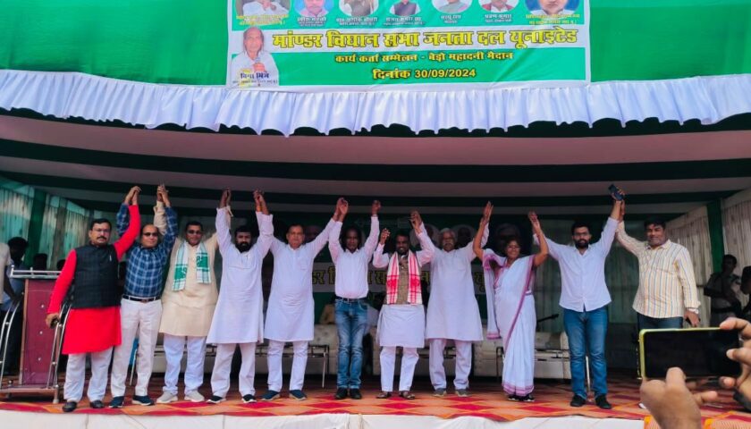 जदयू के राष्ट्रीय महासचिव श्याम रजक बेड़ो के महादानी मैदान में आयोजित जदयू के मांडर विधानसभा कार्यकर्ता सम्मेलन में बतौर मुख्य अतिथि शामिल हुए। कार्यकर्ता सम्मेलन में प्रदेश जदयू अध्यक्ष सह सांसद खीरू महतो भी शामिल हुए। कार्यक्रम की अध्यक्षता जदयू के माँडर विधानसभा प्रभारी बिगा मिंज ने की। मौक़े पर पूर्व मंत्री सुधा चौधरी, जदयू नेता डॉ आफ़ताब जमिल, श्रवण कुमार, सागर कुमार, संजय सिंह, दीपनारायण सिंह, दुष्यंत पटेल, प्रदीप रजक एवं अन्य उपस्थित रहे।