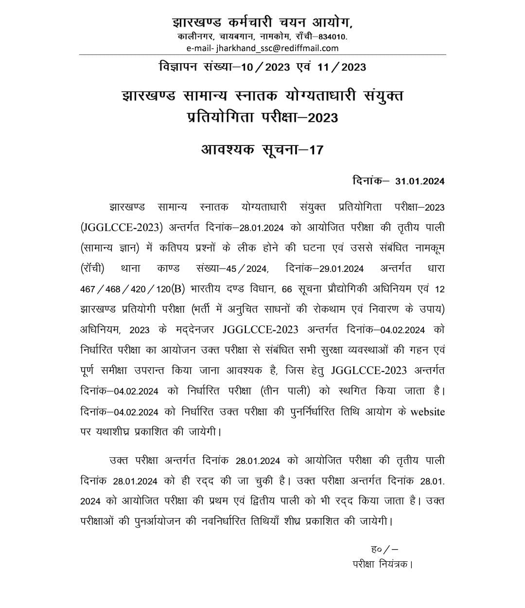 4 फरवरी को होने वाली JSSC CGL परीक्षा भी हुई रद्द..!