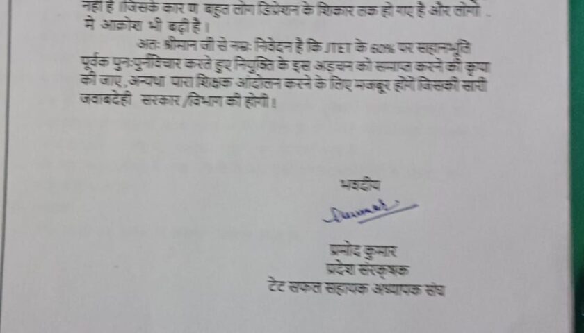 सहायक अध्यापक की ओर से प्रमोद कुमार ने बताया है कि