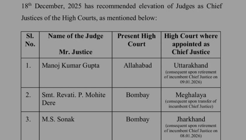 कॉलेजियम की इस अनुशंसा के तहत केवल झारखंड ही नहीं, बल्कि पटना, मेघालय, उत्तराखंड और सिक्किम हाईकोर्ट के मुख्य न्यायाधीशों में भी बदलाव किया गया है। यह निर्णय न्यायिक प्रशासन को और अधिक प्रभावी व संतुलित बनाने की दिशा में उठाया गया कदम माना जा रहा है।