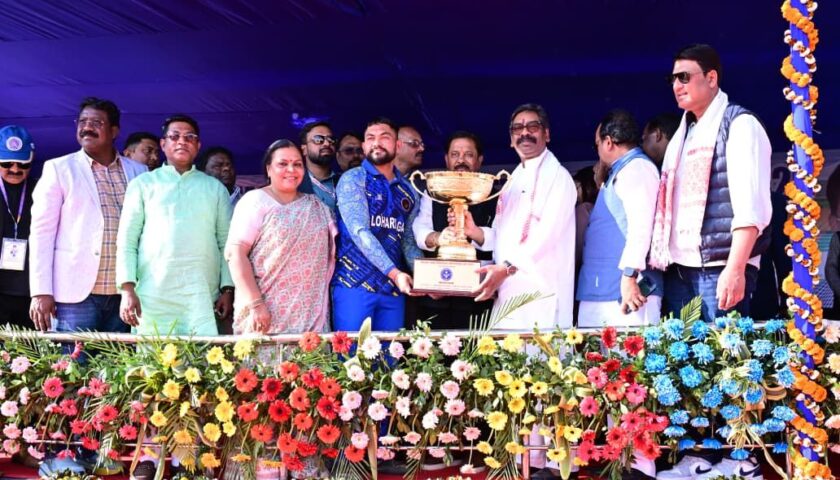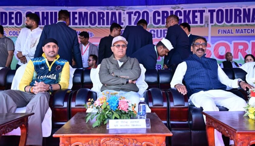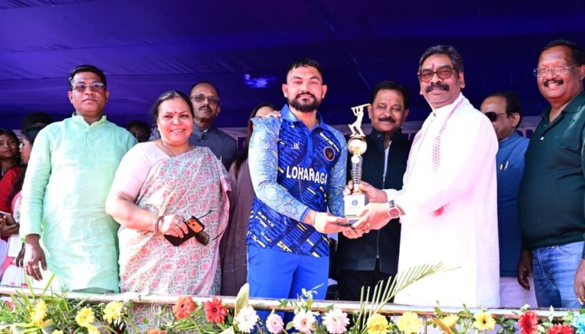 लोहरदगा के बीएस कॉलेज मैदान में आयोजित बलदेव साहू मेमोरियल टी-20 क्रिकेट टूर्नामेंट-2026 का भव्य समापन समारोह मुख्यमंत्री श्री हेमन्त सोरेन की उपस्थिति में संपन्न हुआ। इस रोमांचक फाइनल मुकाबले में लोहरदगा लायंस ने पलामू जगलर्स को 8 विकेट से हराकर टूर्नामेंट का खिताब अपने नाम किया। मुख्यमंत्री ने विजेता और उपविजेता टीम को ट्रॉफी प्रदान कर खिलाड़ियों का उत्साहवर्धन किया।