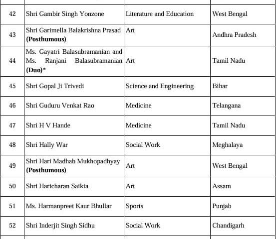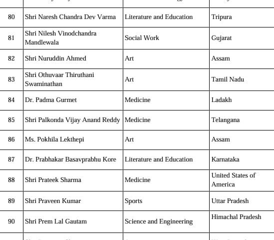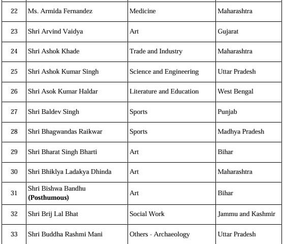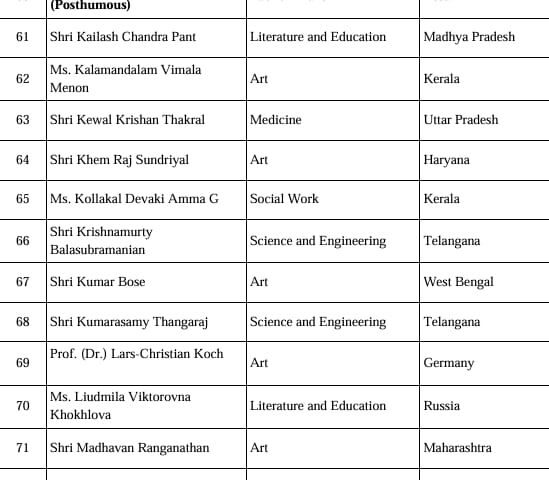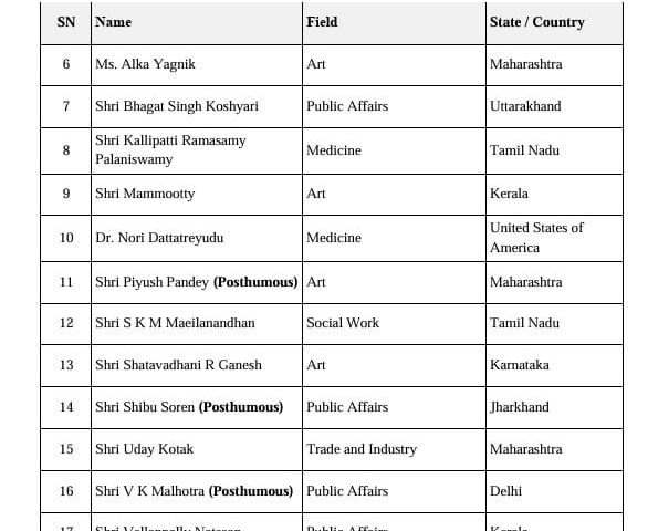 इसके अलावा, इस सूची में विदेशी नागरिकों, अनिवासी भारतीयों (NRI), भारतीय मूल के व्यक्तियों (PIO) और भारत के प्रवासी नागरिकों (OCI) की श्रेणी में कुल छह लोग शामिल हैं। वहीं, 16 व्यक्तियों को मरणोपरांत पद्म पुरस्कार से सम्मानित किया जाएगा।