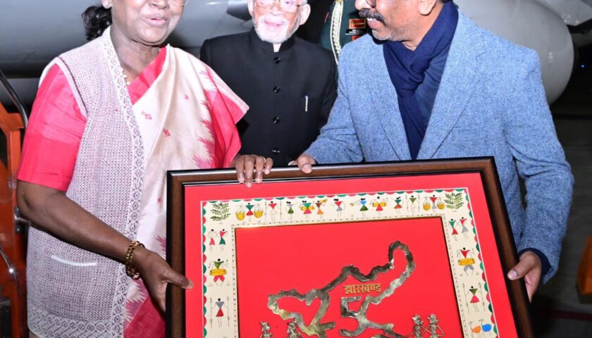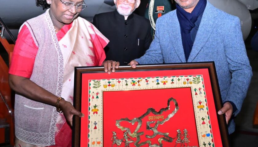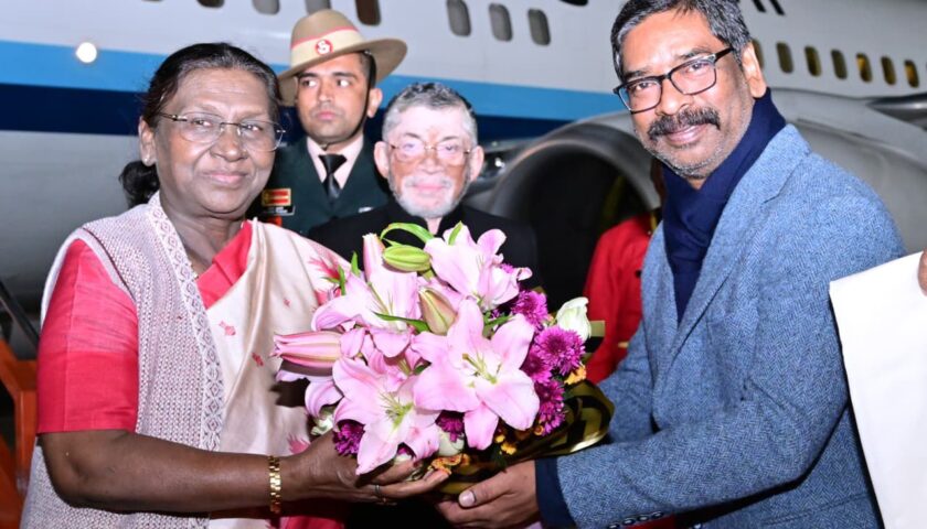 झारखंड के तीन दिवसीय दौरे पर माननीय राष्ट्रपति द्रौपदी मुर्मु का आज राजधानी रांची आगमन हुआ। उनके आगमन पर बिरसा मुंडा एयरपोर्ट पर भव्य एवं गरिमामय स्वागत किया गया।