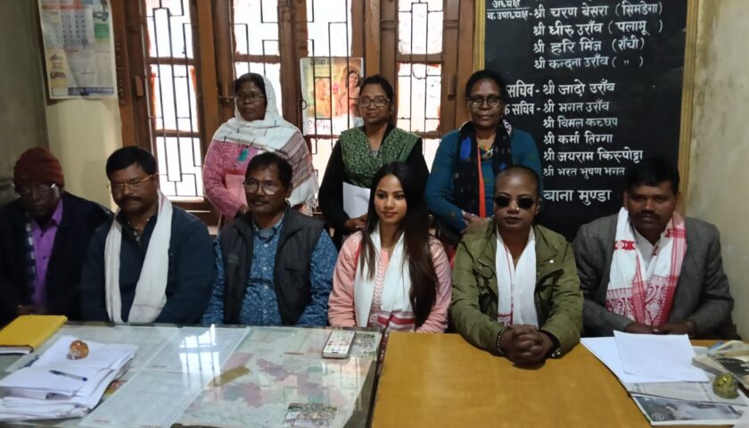 केन्द्रीय सरना समिति के केन्द्रीय कार्यालय, 13 आर.आई.टी. बिल्डिंग परिसर में आज एक प्रेस वार्ता का आयोजन किया गया। प्रेस वार्ता में केन्द्रीय सरना समिति की केन्द्रीय महिला अध्यक्ष श्रीमती निशा भगत के साथ प्रशासन द्वारा किए गए कथित दुर्व्यवहार एवं थप्पड़ मारने की घटना को लेकर कड़ी आपत्ति जताई गई।