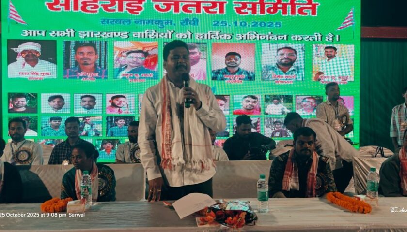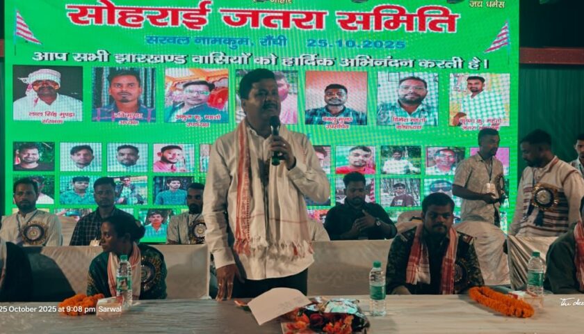 रांची/नामकुम:- सोहराई जतरा सरवल के उपलक्ष्य में एक दिवसीय फुटबॉल टूर्नामेंट मैच एवं जतरा का आयोजन किया गया। इस सोहराई जतरा सह एक दिवसीय फुटबॉल टूर्नामेंट मैच के मुख्य अतिथि खिजरी विधायक सह कांग्रेस विधायक दल के उपनेता राजेश कच्छप उपस्थित हुए। मौके पर जतरा को संबोधित करते हुए कहा कि जतरा हमारे झारखण्ड की कला और संस्कृति को बढ़ावा और संस्कृति को बचाये रखने की कहीं। हमारे समाज पहड़ा व्यवस्था से चलता है। जल, जंगल और जमीन को बचाये रखना है। सभी को सोहराई जतरा की शुभकामनाएं भी दी।फुटबॉल टूर्नामेंट में कुल 16 टीमें भाग लिया जिसमें प्रथम पुरस्कार बुरुकोचा, हाहाप को एक बड़ा खस्सी, द्वितीय पुरस्कार जोरार पहचान टोली को एक खस्सी, तृतीय पुरस्कार किशोर ब्रदर्स सरवल को एक खस्सी एवं चतुर्थ पुरस्कार डोन बास्को स्कूल एक खस्सी दिया गया। सोहराई जतरा के उपलक्ष्य में रात्रि आर्केस्ट्रा का आयोजन किया गया। मौके जतरा समिति के संरक्षक लाल सिंह मुण्डा, अध्यक्ष रवि मुण्डा, उपाध्यक्ष अनुज कुमार महतो, सचिव बबलु टुटी, उप सचिव बबलु मुण्डा, कोषाध्यक्ष दिनेश महतो, जतरा संचालक कृष्णा कुमार महतो, सोमरा स्वांसी, मंगल मुण्डा, सुकरा मुण्डा, एएसआई जयदेव, वार्ड सदस्य अंशु मुण्डा, बिरसा महतो, दिनेश चन्द्र प्रमाणिक एवं अन्य लोग उपस्थित थे