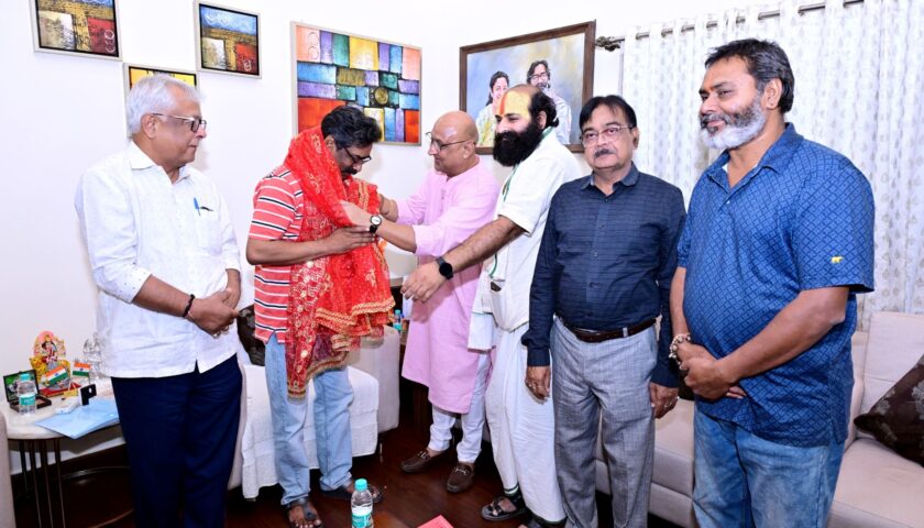 रांची | Hemant Soren से आज मुख्यमंत्री आवासीय कार्यालय में श्री राम जानकी तपोवन मंदिर नवनिर्माण समिति के सदस्यों ने शिष्टाचार मुलाकात की। इस दौरान समिति ने मंदिर के चल रहे नवनिर्माण कार्य की प्रगति से मुख्यमंत्री को अवगत कराया और उन्हें स्थल निरीक्षण के लिए आमंत्रित किया।