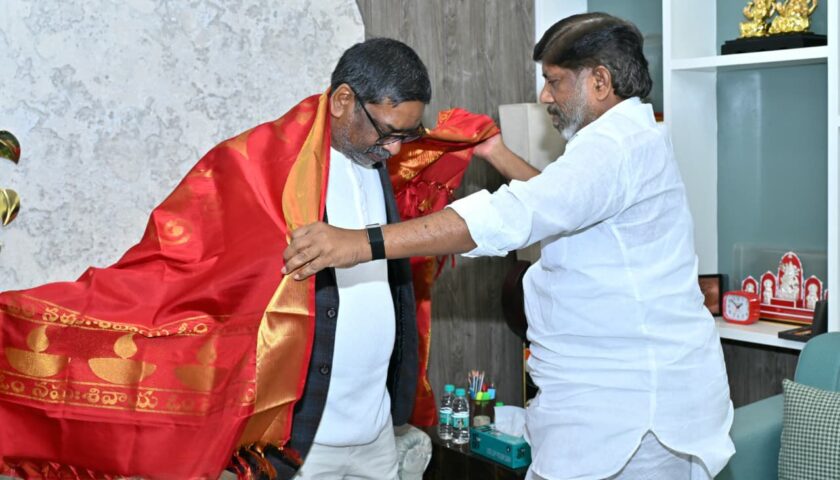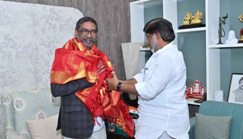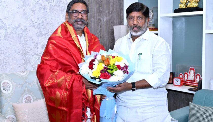 रांची, 5 दिसंबर 2025: मुख्यमंत्री श्री हेमन्त सोरेन से आज तेलंगाना के उप मुख्यमंत्री श्री मल्लू भट्टी विक्रमार्क ने कांके रोड स्थित मुख्यमंत्री आवासीय कार्यालय में शिष्टाचार भेंट की।