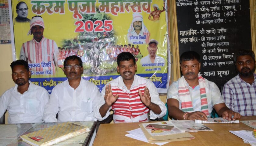 जगह-जगह करम पुर्व संध्या मनाया जा रहा है महासचिव संजय तिर्की ने कहा कि करम पूजा महोत्सव को शांतिपूर्वक ढंग से मनाने के लिए सरकार प्रत्येक अखाड़े में पुलिस बलों की तैनाती करें, शौचालय एवं पानी टैंकर व्यवस्था करें, करम के दिन बड़ी वाहनों का प्रवेश वर्जित हो, पूजा के दिन शराब बंदी किया जाए अखिल भारतीय आदिवासी विकास परिषद के अध्यक्ष सत्यनारायण लकड़ा ने कहा कि करम पूजा रूढ़िवादी परंपरा के अनुसार अखाड़ा में मनाए अखाड़ा में पारंपरिक वाद्य यंत्र ढोल नगाड़ा मांदर से नृत्य संगीत करें डिजे साउंड का प्रयोग ना करें मौके पर केंद्रीय सरना समिति के महासचिव संजय तिर्की उपाध्यक्ष प्रमोद एक्का अमर तिर्की जयराम किस्पोट्टा सोहन कच्छप विनय उरांव पंचम तिर्की अन्य शामिल थे।
