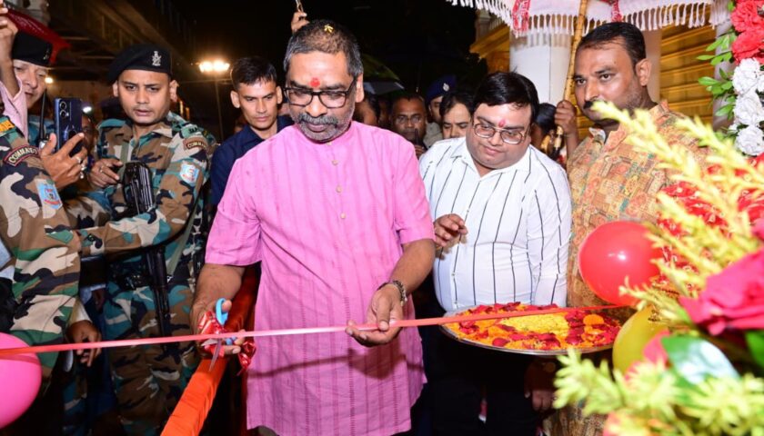 रांची। मुख्यमंत्री हेमन्त सोरेन ने शुक्रवार को राजधानी रांची में शारदीय नवरात्र के शुभ अवसर पर दो प्रमुख पूजा पंडालों का उद्घाटन किया। मुख्यमंत्री ने आर०आर० स्पोर्टिंग क्लब, रातु रोड एवं पंच मंदिर दुर्गा पूजा समिति हरमू स्थित दुर्गा पूजा पंडाल का विधिवत् अनावरण किया।
