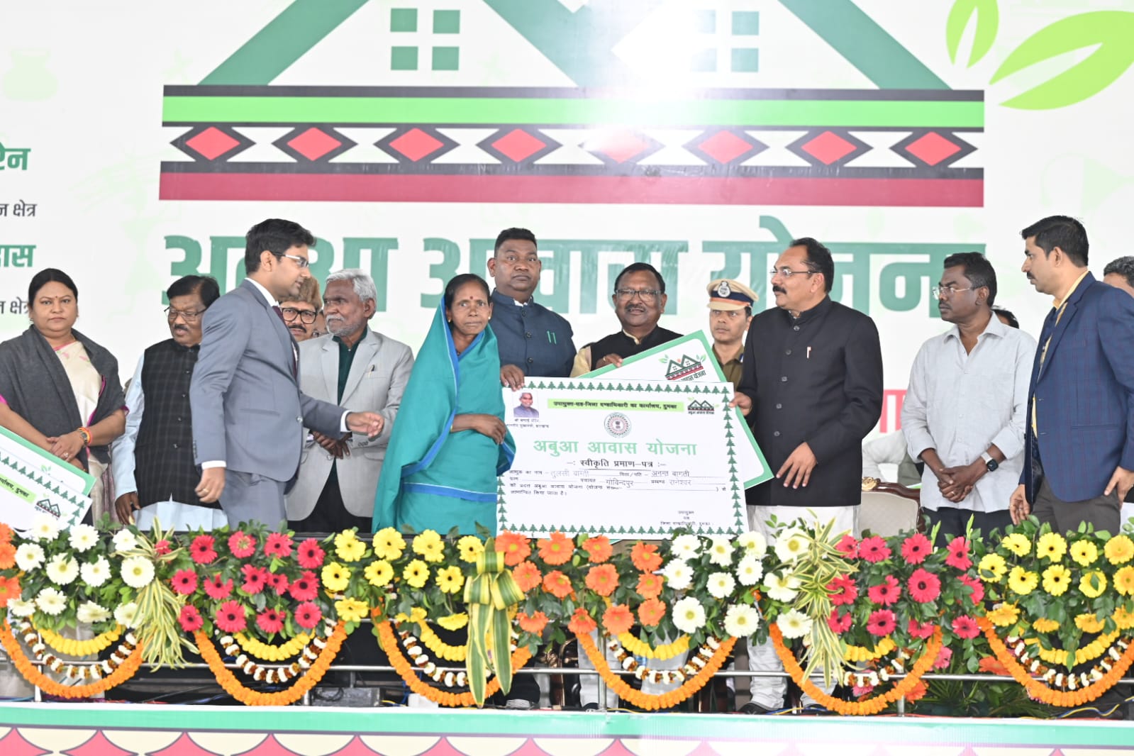 वर्ष 2027 तक झारखंड में हर किसी का अपना मकान का होगा। कोई भी व्यक्ति झुग्गी- झोपड़ी, टूटे -फूटे और जर्जर घर में रहने को मजबूर नहीं होगा। सभी को तीन कमरे का पक्का मकान मिलेगा। राज्य सरकार ने अपने बलबूते 20 लाख गरीब, जरूरतमंद और आवासविहीन लोगों के अपने आशियाना होने के सपने को साकार करने की दिशा में कदम बढ़ा दिए हैं। मुख्यमंत्री श्री चम्पाई सोरेन आज दुमका जिले के जामा प्रखंड स्थित कमार दुधानी में आयोजित “अबुआ आवास योजना” कार्यक्रम को संबोधित कर रहे थे। इस अवसर पर उन्होंने दुमका के 9827, जामताड़ा के 5711 और देवघर जिला के 9847 लाभुकों को अबुआ आवास का स्वीकृति पत्र प्रदान किया और उनके बैंक खाते में डीबीटी के माध्यम से पहले क़िस्त की राशि के रूप में 76 करोड 15 लाख 50 हज़ार रुपए हस्तांतरित किए।