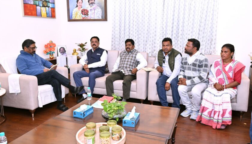 रांची: मुख्यमंत्री आवासीय कार्यालय, कांके रोड में आज मुख्यमंत्री हेमन्त सोरेन से मरांग बुरू जुग जाहेर बाहा बोंगा समिति, गिरिडीह के प्रतिनिधिमंडल ने शिष्टाचार मुलाकात की। इस दौरान प्रतिनिधिमंडल ने मुख्यमंत्री को मरांग बुरू पारसनाथ में 18 से 21 फरवरी 2026 तक आयोजित होने वाले धार्मिक एवं सांस्कृतिक महत्व के ‘बाहा पर्व’ में मुख्य अतिथि के रूप में शामिल होने का औपचारिक निमंत्रण दिया।